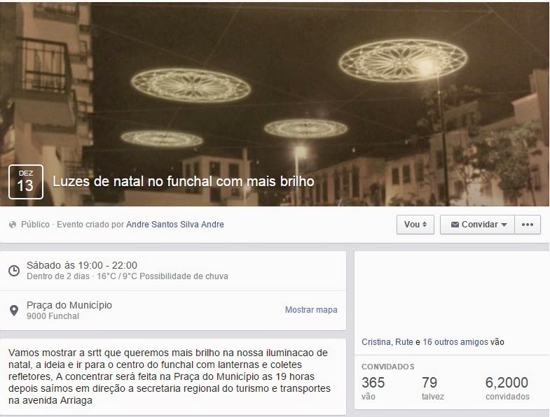 "Luzes de natal no funchal com mais brilho". Assim se chama o 'evento' que foi criado no Facebook, para mobilizar os cidadãos para um protesto a realizar-se no dia 13, sábado.
